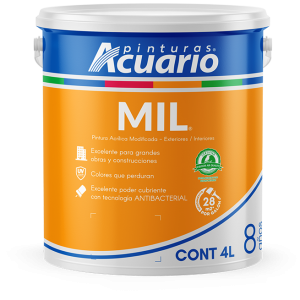 Pintura fabricada con emulsión Acrílica modificada en acabado semimate y satinado con buen poder cubriente y excelente duración.